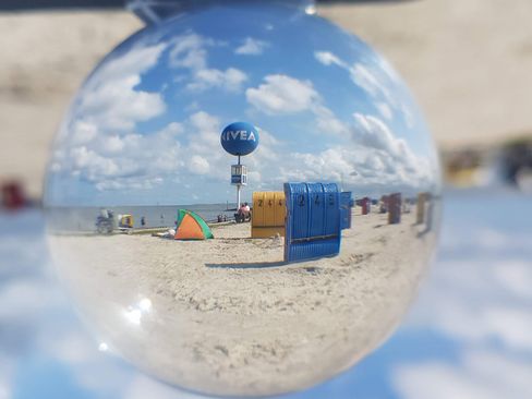Sein genialer Erfinder ist unbekannt. Sicher ist jedoch, dass er in den späten 1930er Jahren das erste Mal an deutschen Stränden auftauchte: der blaue NIVEA-Ball. Ein wahrer Gigant des runden Markenbotschafters befindet sich direkt am Strand von Dornumersiel: Ein riesiger NIVEA-Ball aus glasfaserverstärktem Kunststoff tront dort in zehn Metern Höhe auf einem Mast. Seit 1973 steht die monumentale Kugel dort, mittlerweile Wahhrzeichen und geliebtes Kultobjekt. Er ist der letzte seiner Art. Als die Firma Beiersdorf in den siebziger Jahren damit begann, ihre weiße Creme auch im Großformat zu bewerben, war der NIVEA-Ball von Dornumersiel noch einer von vielen in der BRD, die die Strände überall an Nord- und Ostseeküste säumten.Sie dienten damals als DLRG-Rettungs- und Beobachtungstürme, um die Sicherheit der stetig wachsenden Zahl der Badegäste an den Stränden zu gewährleisten. Mit den Jahren verschwanden die blauen Giganten wieder von den Stränden – bis auf unseren Ball in Dornumersiel. Dessen Tage übrigens auch gezählt waren. Er war sichtbar in die Jahre gekommen. 2019 wurde er in einer aufwendigen Aktion von der Firma Beiersdorf runderneuert. Und jetzt prangt er schöner denn je in sattem Königsblau an unserem Strand.Und dient als Treffpunkt. „Am NIVEA-Ball“ heißt es immer, wenn man in Dornumersiel zu Sport und Spaß am Strand zusammenkommt. Und weckt Erinnerungen an erlebnisreiche Urlaustage, an Familienferien, an Hochzeitstage, oder einfach nur entspannte Strandspaziergänge im Sonnenuntergang.