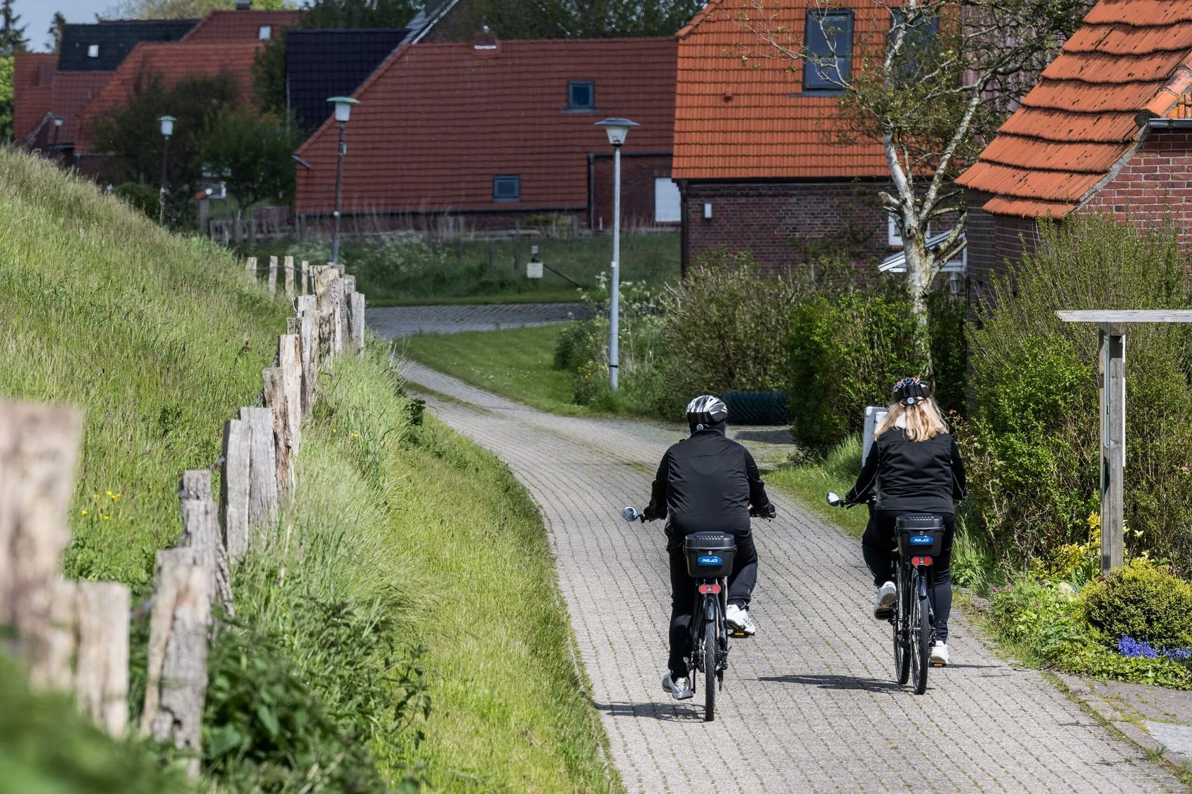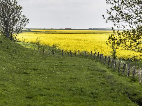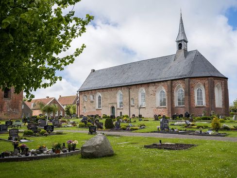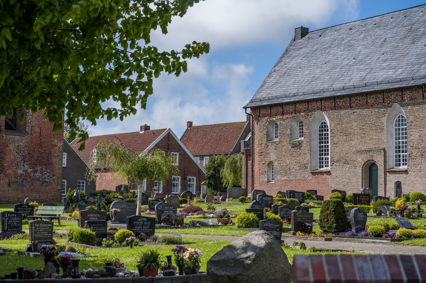 Es ist Frühling. Und auch wenn der Wind noch ein paar dunkle Wolken vor sich hertreibt, summt, blüht und zwitschert es in Gärten und auf Wiesen. Die Natur geizt gerade nicht mit Farben. Das Gold des Nordens, der Raps, erstrahlt in sattem Gelb. Dazu die gigantischen Wolkenformationen am Himmel. Dramatik pur! Mag ja sein, dass die Skyline von New York beeindruckend ist. Unser imposanter ostfriesischer Himmel kann da glatt mithalten! Die weitläufigen Rapsfelder haben bei uns Tradition. Der Raps ist in Ostfriesland seit Jahrhunderten eine wirtschaftlich bedeutsame Nutzpflanze, der vor allem wegen des wertvollen und vielseitig verwendbaren Öls angebaut wird. Ein weiterer Augenschmaus sind die vielen blühenden Apfelbäume, die in Westeraccum für einen wahren Farbenrausch sorgen. Und bei so viel Blütenpracht ringsum darf auch eine Rast im beschaulichen Garten „Uns Thun“ nicht fehlen. Da zeigen sich jetzt die ersten Frühlingsblumen. Wir lassen heute die Nordsee mal links liegen und lassen uns von dem ländlichen Charme der ostfriesischen Landschaft verzaubern. Eine Landpartie durch Feld und Flur, entlang grasender Kühe, stattlicher Bauernhöfe, mittelalterlicher Backsteinkirchen und moderner Hightech-Windräder.