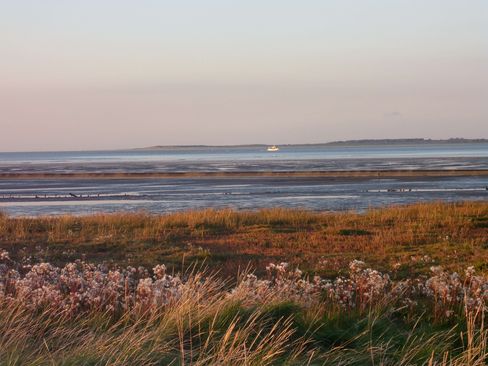 Wer denkt, hinter dem Deich beginnt sofort die Nordsee – der irrt sich meistens. Oft liegen zwischen Watt und Land die Salzwiesen. Sie sind Orte des Übergangs; nicht mehr Land, noch nicht Meer. Untrennbar mit dem Wattenmeer verbunden, ebenso wertvoll und schützenswert. Oft überflutet und voller Leben. Die Salzwiese ist ein Naturwunder. In den Wintermonaten wirkt sie ruhig und eintönig. Im Frühjahr erwacht sie zum Leben: Von Mai bis Oktober wandelt sie sich ununterbrochen. Im Frühling beginnen die zartrosa Strandgrasnelken zu blühen. Im Hochsommer verwandelt der Strandflieder die Salzwiesen in ein lila Blütenmeer, und im Herbst taucht der Queller sie in ein dunkles, sattes Rotbraun. Wenn du also neben einer Wattwanderung die Salzwiesen erkunden möchtest: Hier findest du alles Wissenswerte über die Salzwiesen bei Dornum an der Nordsee