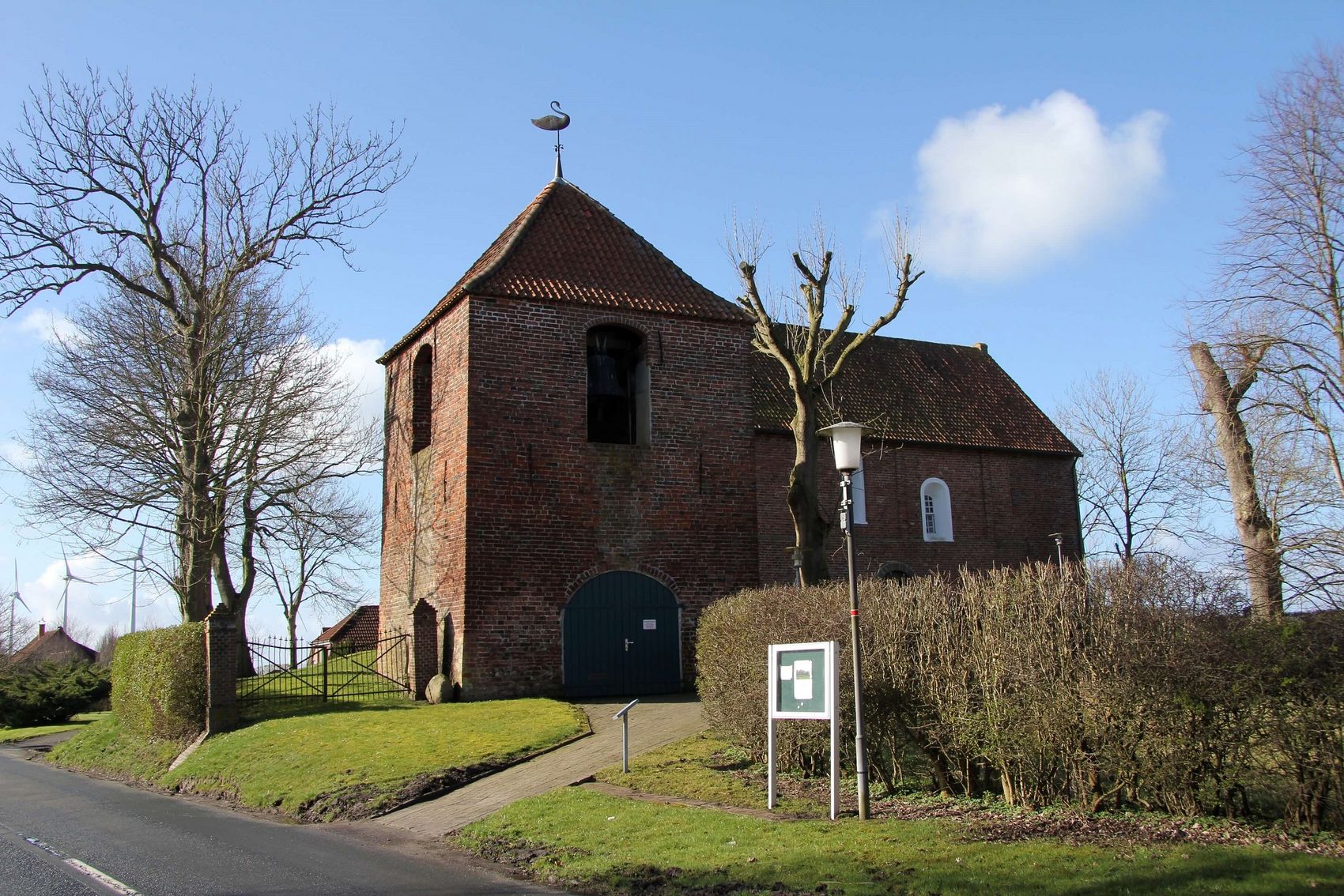 Alle Kirchen stehen auf Warften, 5 - 8 Meter hohen künstlich aufgeschütteten Erdhügeln. Gut vorstellbar, dass die Kirchen deshalb bei Sturmfluten der Bevölkerung als Zufluchtsorte dienten.